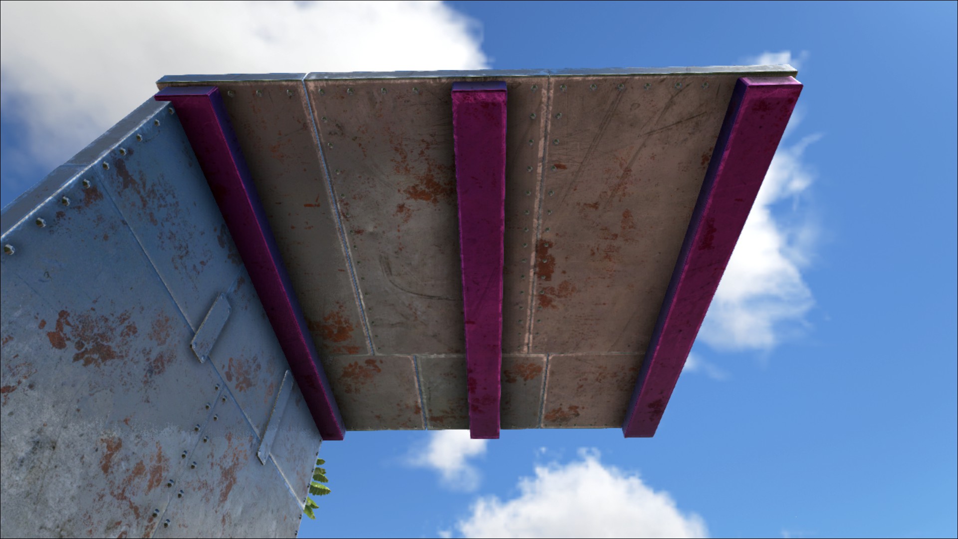 Survival Evolved Este cimiento es el cuarto nivel de los mismos en desbloquearse y se utiliza como los otros para la creación de estructuras casas o almacenes. El techo de metal Metal Ceiling en la versión oficial del juego es una de las estructuras disponibles en ARK. Marco para puerta gigante.